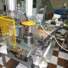 Коробка состоит из двух частей — обечайки и донца. В первом цикле на конец обечайки, помещенной на стол, наносится клей. Оператор берет обечайку и оборачивает вокруг оправки и склеивает концы. Затем оправка с обечайкой перемещается под пресс, где происходит завальцовка краев обечайки нагретой плитой пресса. В это же время на помещенную на поворотный стол заготовку донца наносится клей по кругу с краю. После завальцовки оправка с обечайкой возвращается в исходное положение. Оператор берет донце и накладывает его на обечайку, затем опускается плита пресса и приклеивает донце к обечайке. Снятие коробки с оправки происходит вакуумной присоской вмонтированной в пресс. Оператор вручную удаляет коробку в накопитель.