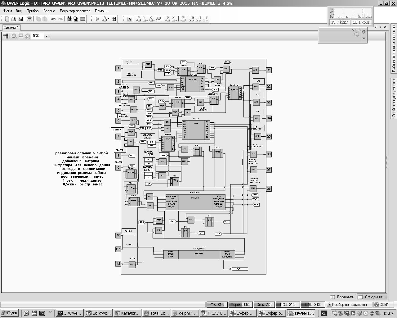 На хлебозаводе в г. Херсоне из-за разукомплектования оборудования потребовалась модернизация системы управления тестомесительной машины. Проект был реализован на базе программируемого реле ОВЕН ПР110. Доступное и интуитивно понятное программирование в среде OwenLogic позволило реализовать все функции управления тестомесительной машины: