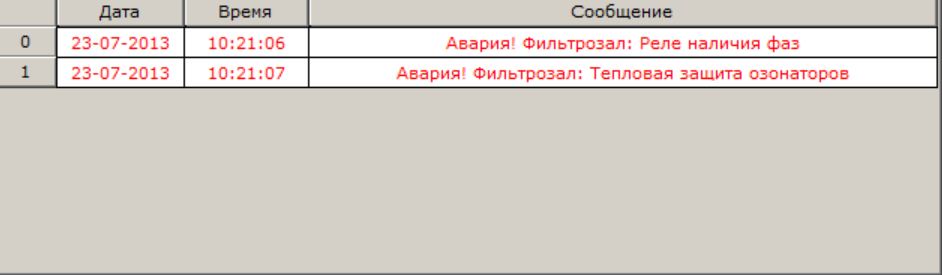 Панель аварий – таблица, в которой отображаются текущие активные аварии.