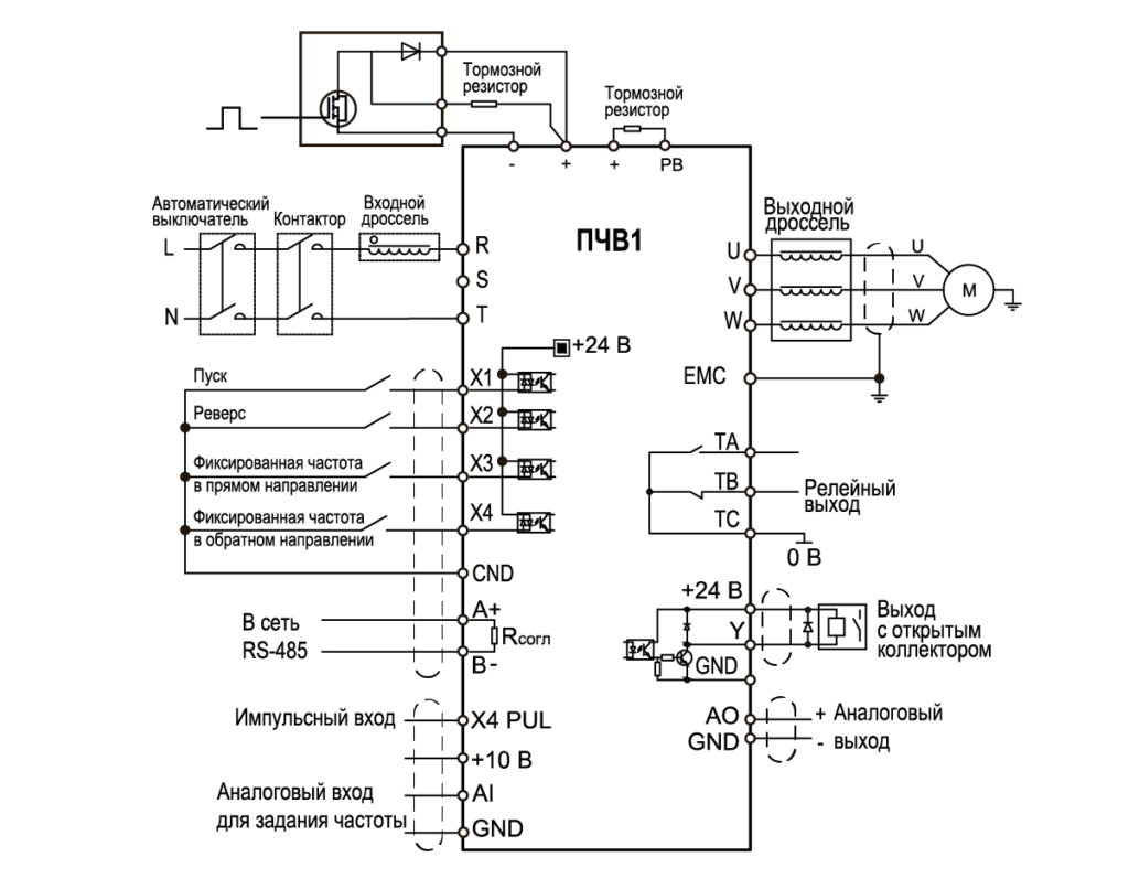 Подключение ПЧВ1 осуществляется согласно схеме, представленной ниже.