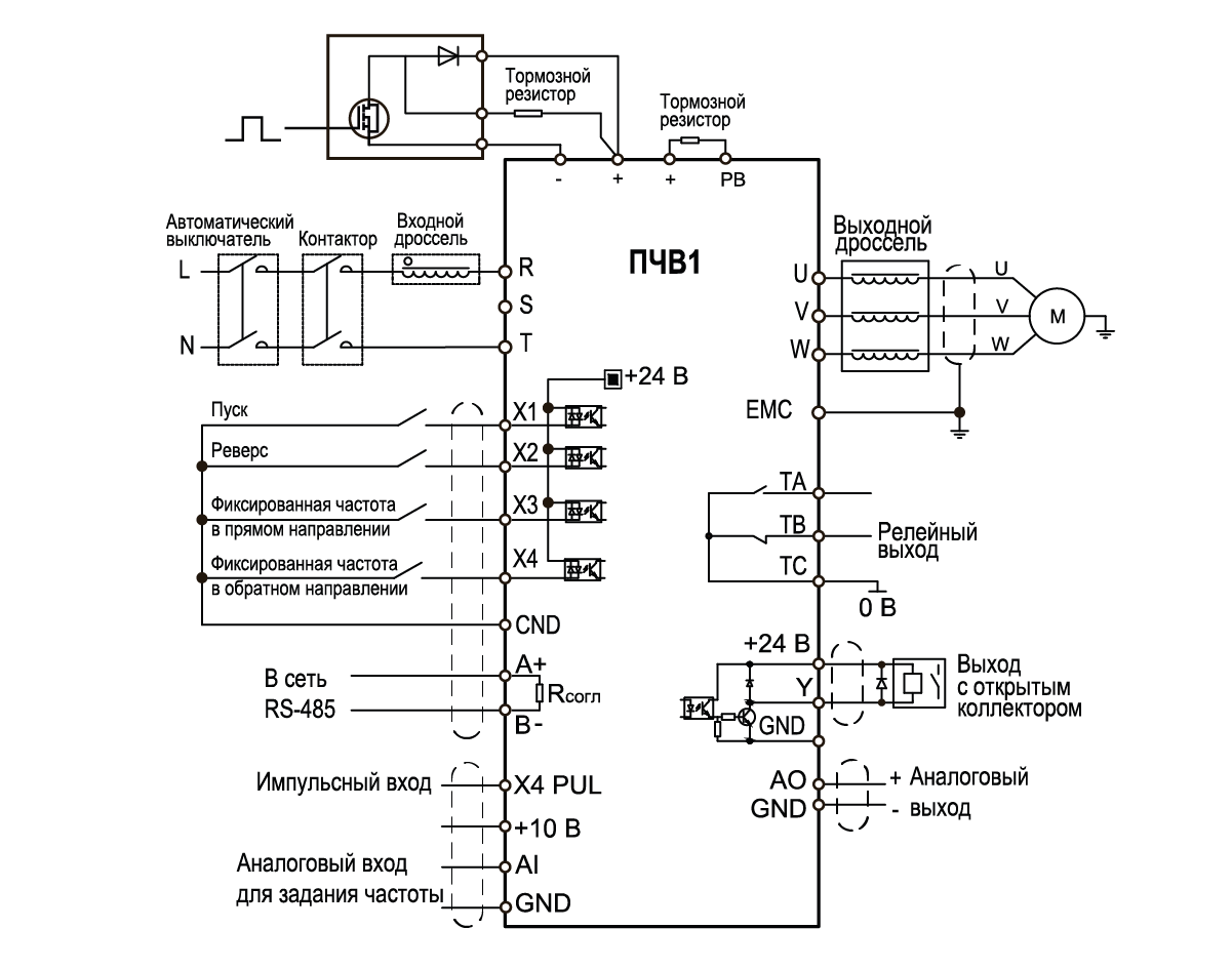 Подключение ПЧВ1 осуществляется согласно схеме, представленной ниже.