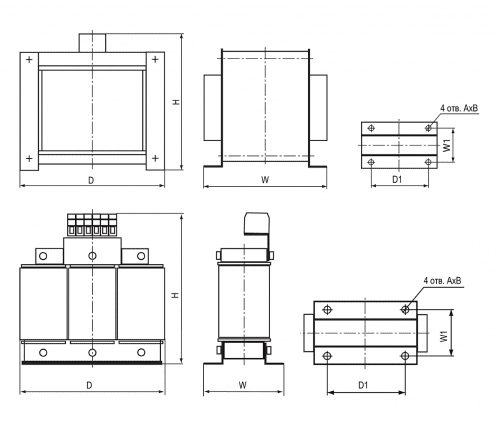 Массогабаритные характеристики сетевых дросселей РСО и РСТ
